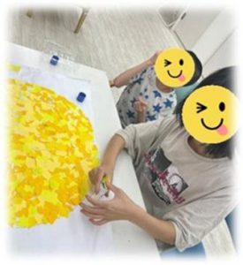 敬老の日を前にして、日ごろの感謝の気持ちを込めて、家族へのありがとうのお花工作をしました。
