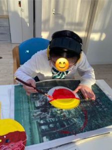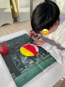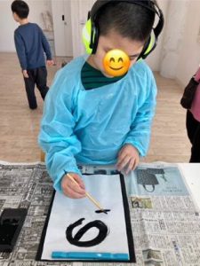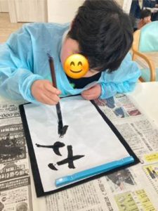 自分の名前や、好きな物を自由に書いています。筆を使う事がとても楽しいようでした♪