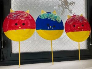 そして、制作では節分に向けて、鬼のでんでん太鼓作りをしました!