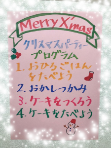 Xmas会ではXmas模様にお部屋の飾りつけをしました。