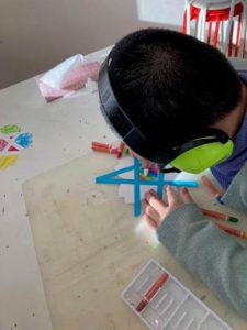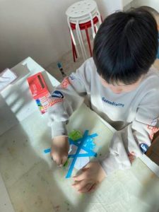 クレヨンでお花の形に切った画用紙に、色を塗っていますね!